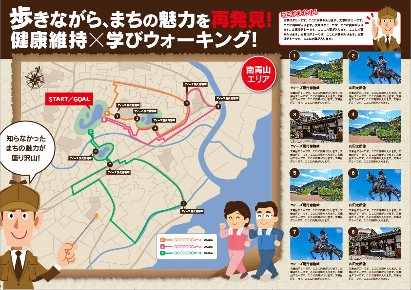 ウォーキングマップ巻三つ折りパンフレット