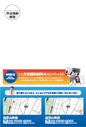 DZ式広告理論である4つのパーツで構成したはがき広告です。
