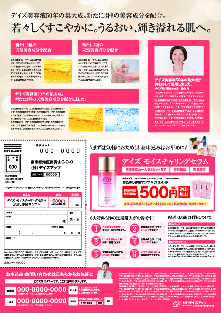 DZ式広告理論である4つのパーツで構成したフライヤーです。