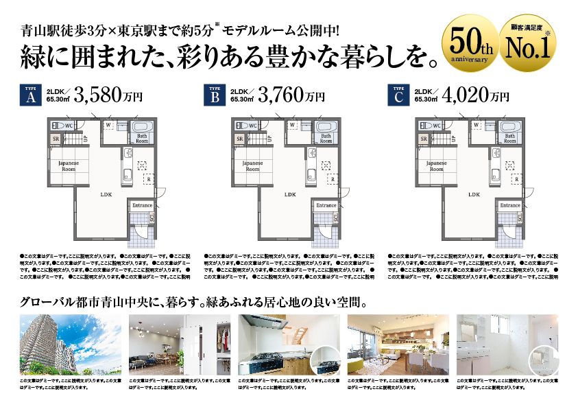 DZ式広告理論である4つのパーツで構成した三つ折りパンフレットです。