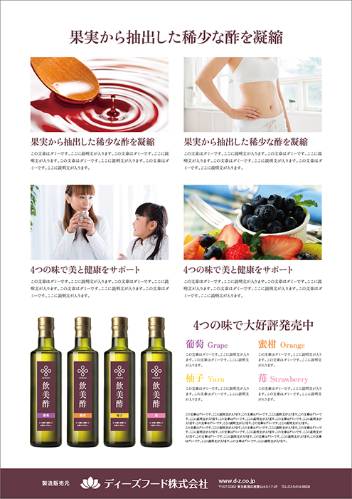 DZ式広告理論である4つのパーツで構成したフライヤーです。