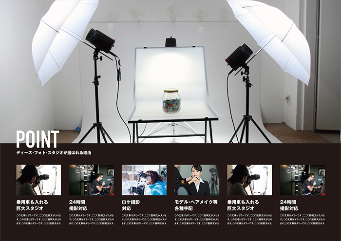 DZ式広告理論である4つのパーツで構成したパンフレットです。