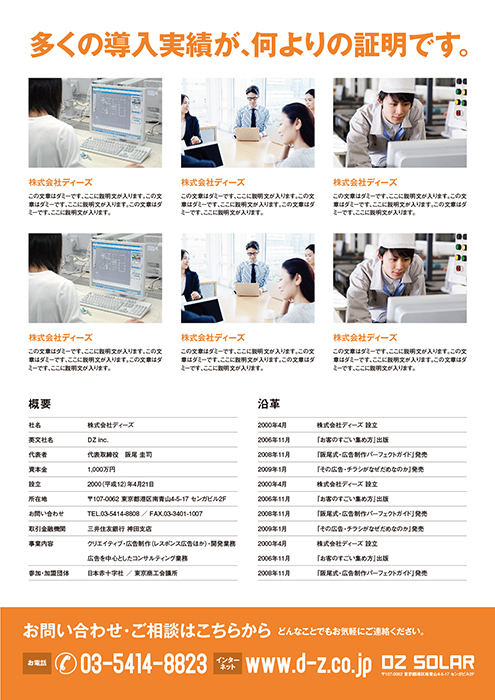 DZ式広告理論である4つのパーツで構成したフライヤーです。
